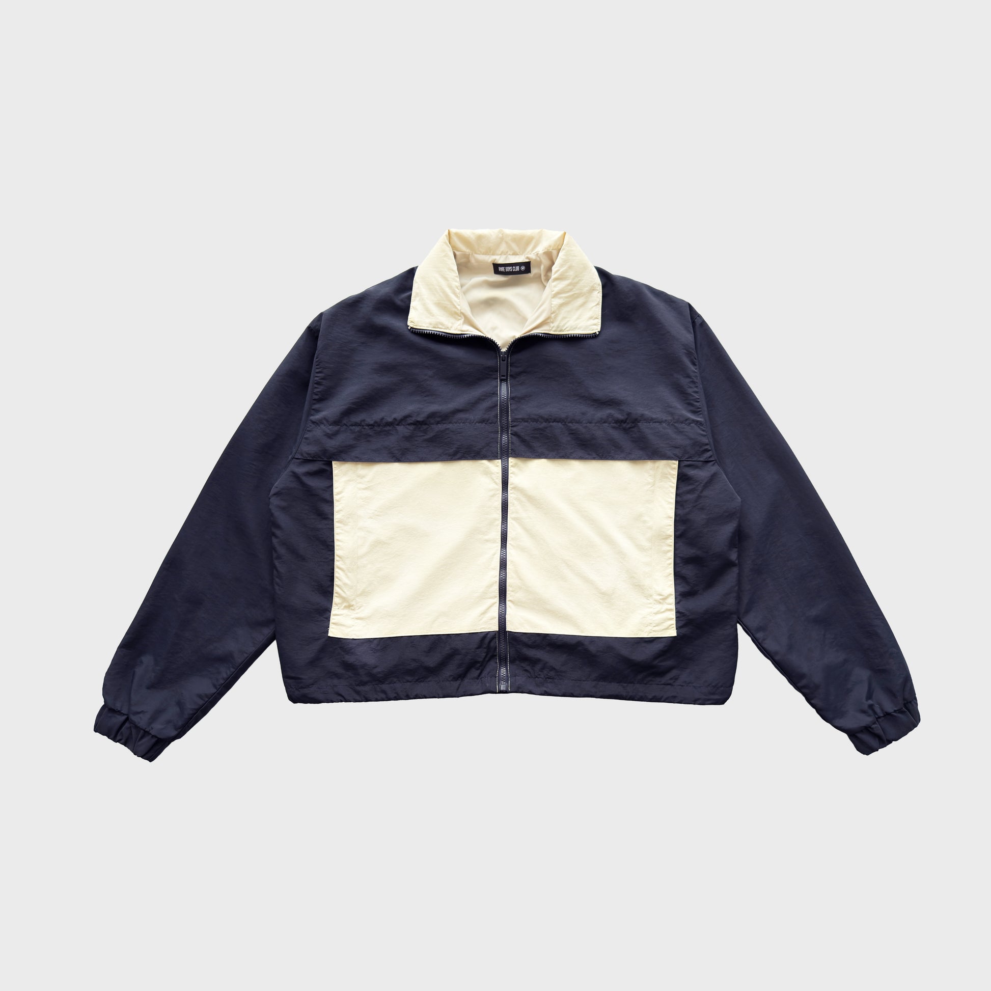 La chaqueta retro Rare Boys Club es una reinterpretación minimalista de los icónicos windbreakers de los 90. Confeccionada en un contraste de azul oscuro y marfil oscuro, incorpora detalles utilitarios como bolsillos funcionales laterales e internos, además de un ajustador interno en la parte inferior. Su silueta relajada BoxyFit y estilo atemporal la convierten en un esencial urbano.